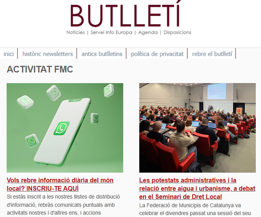 Les notícies sobre l'activitat de l'FMC, les recents informacions d'interès per als governs locals, les disposicions jurídiques noves i diversos actes d'agenda us arriben amb aquest exemplar, el 909. També inclou les notícies recents sobre fons europeus