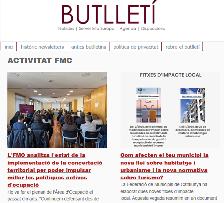 Les notícies sobre l'activitat de l'FMC, les recents informacions d'interès per als governs locals, les disposicions jurídiques noves i diversos actes d'agenda us arriben amb aquest exemplar, el 919. També inclou les notícies recents sobre fons europeus