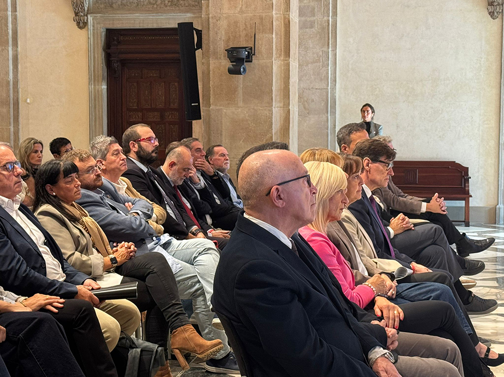 El president de la Federació de Municipis de Catalunya i alcalde de Mataró, David Bote, ha assistit a aquest acte de signatura pel qual el govern col·laborarà en la gestió del patrimoni de l’Entitat Estatal d’Habitatge (Sepes) a Catalunya procedent de la Sareb