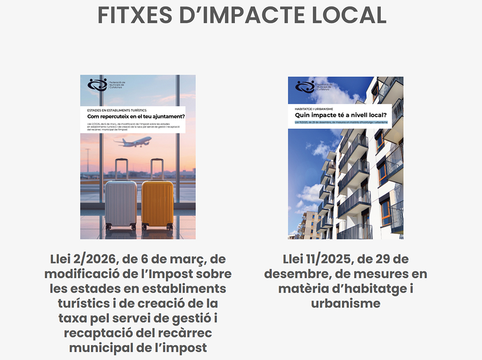 Continuant amb l’objectiu de reforçar la difusió d’informació de contingut jurídic que afecta els ajuntaments, la Federació de Municipis de Catalunya ha elaborat dues noves fitxes d’impacte local